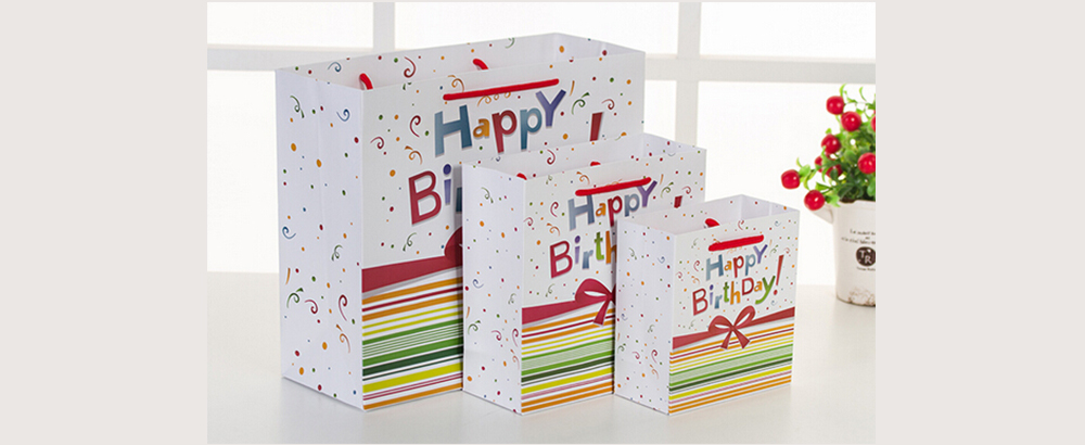 Happy Birthday精致化妝品白卡紙袋定制